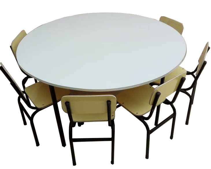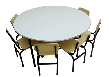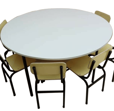 CONJUNTO REDONDO 6 LUGARES COMPONENTES COMP. FORRADO A FORMICA - INFANTIL