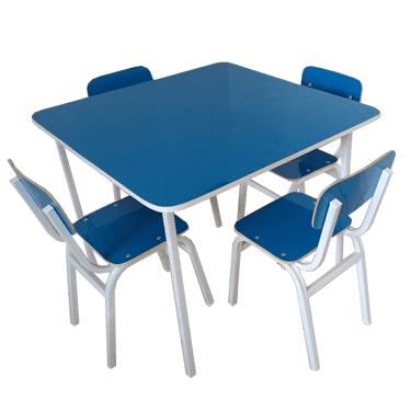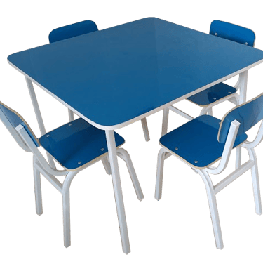 CONJUNTO QUADRADO 4 LUGARES COMPONENTES COMP. FORRADO A FORMICA - INFANTIL