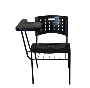Funcionalidade Escolar: Cadeira frontal com prancheta fixa e compartimento porta livros em plástico resistente, convenientemente acoplado. Uma solução completa e durável, com estrutura metálica de alta resistência, desenvolvida para otimizar o espaço em salas de aula.