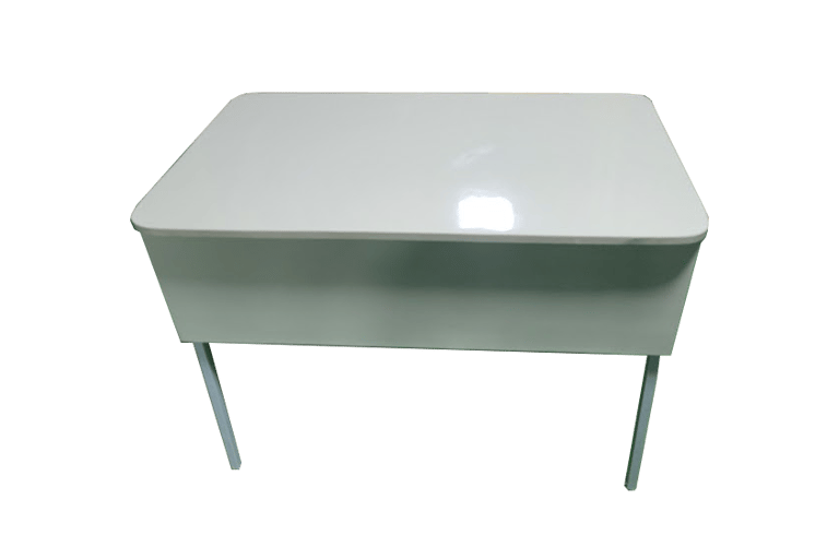 Posto de Trabalho Essencial: Mesa robusta com tampo forrado integralmente em fórmica de alta pressão, garantindo máxima resistência a riscos, desgaste e facilidade de limpeza. Possui estrutura metálica de alta estabilidade e oferece uma superfície de trabalho ampla, ideal para a organização de materiais didáticos, equipamentos eletrônicos e suporte ao planejamento de aulas.